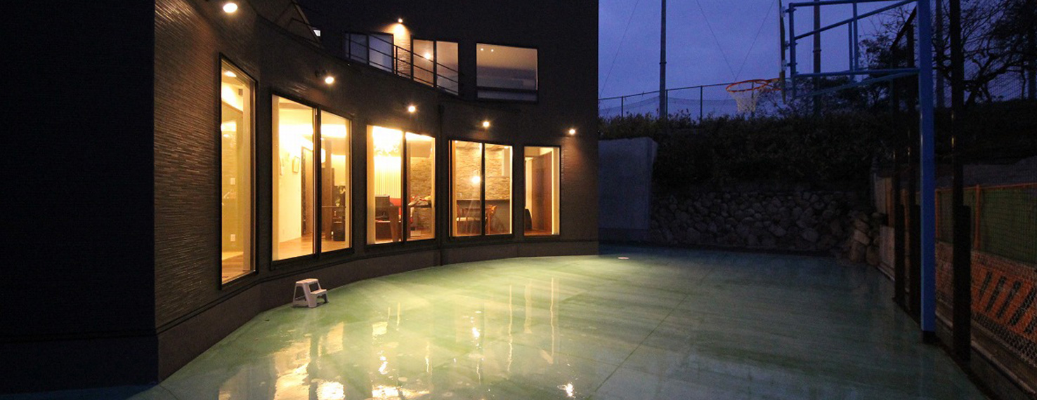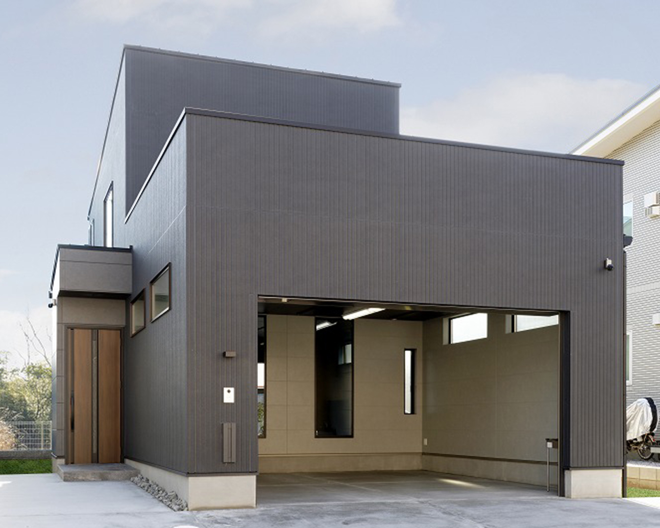 迎えるガレージハウス。