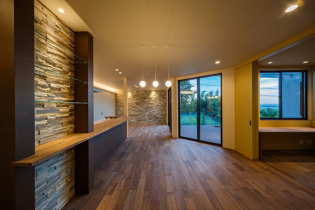 高台に位置する敷地条件を活かし、室内からは琵琶湖を望む開放的な眺めが広がります。