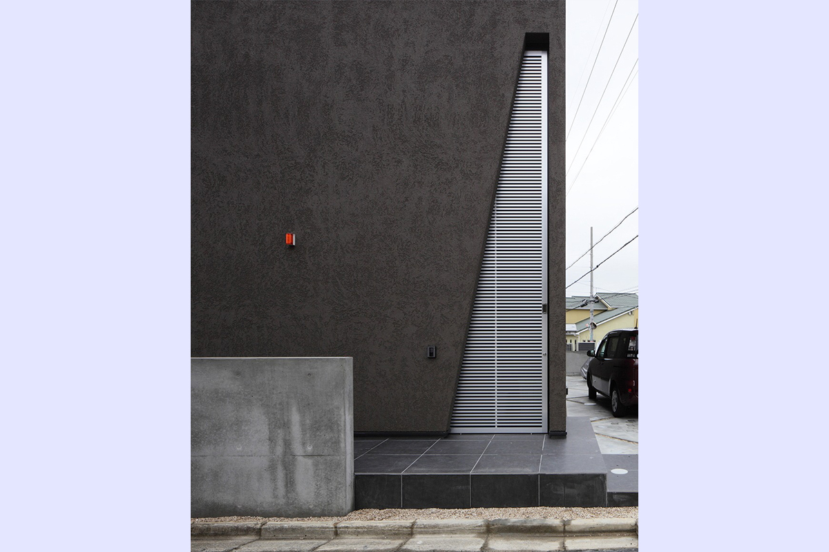 一見すると閉じた印象を受ける外観。しかしその扉を開けた瞬間、想像を超える開放的な空間が広がる住まいです。
