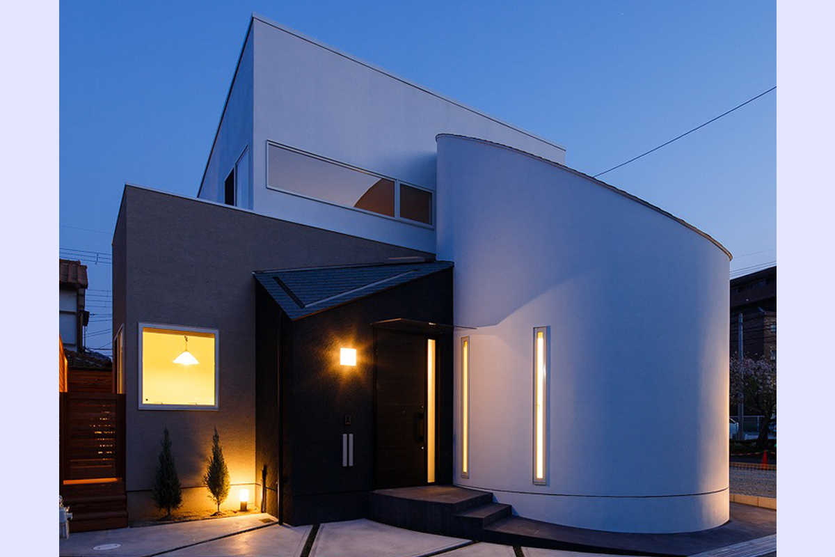 外観は大きな円弧の壁が象徴的で、やわらかな曲線がまるで音の広がりを表現しているかのよう。内部の音楽室は高さのある天井と細長い開口により、光と音がやさしく巡る心地よい空間に仕上げられています。