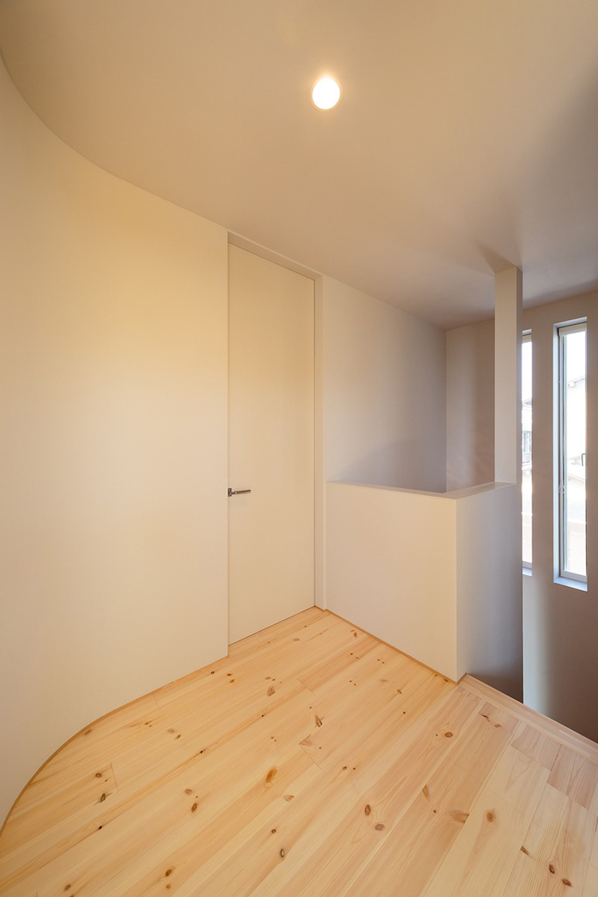 室内は外観のシャープさとは対照的に、曲線を取り入れた柔らかい雰囲気に。