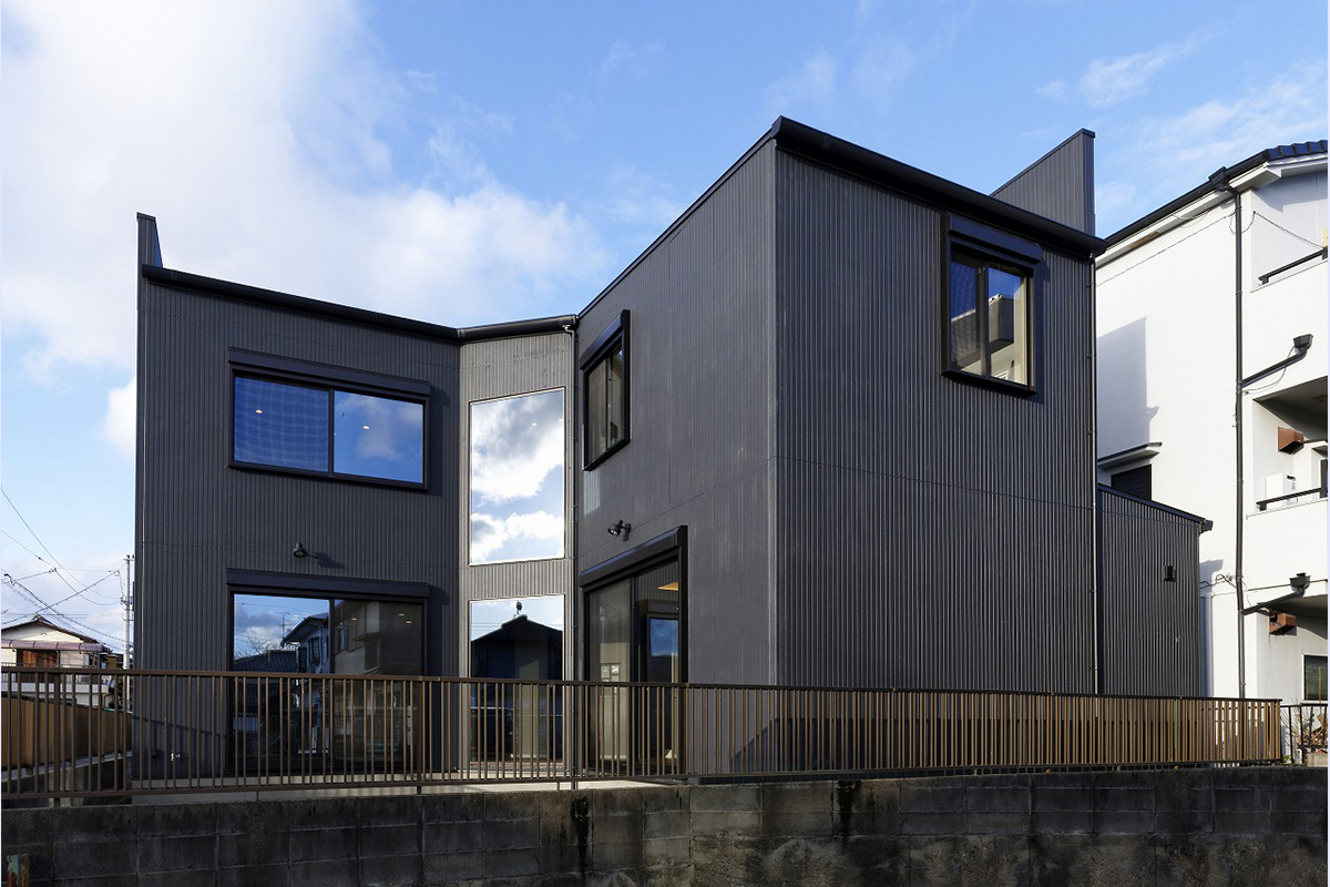 角度とボリュームに変化を持たせたデザインにより、見る方向で印象が変わる存在感のある住まいに仕上がりました。