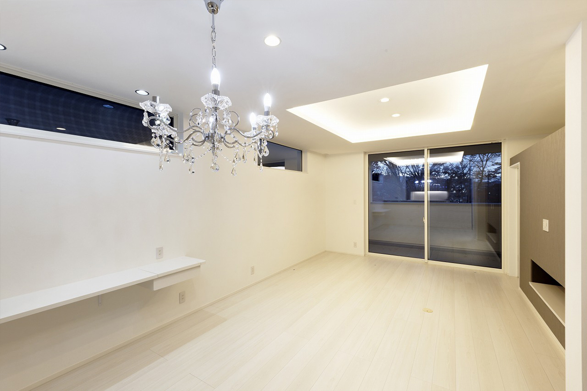 窓の外に広がる緑と空が暮らしの背景となり、四季の移ろいを感じながら、落ち着きのある時間を過ごすことができます。