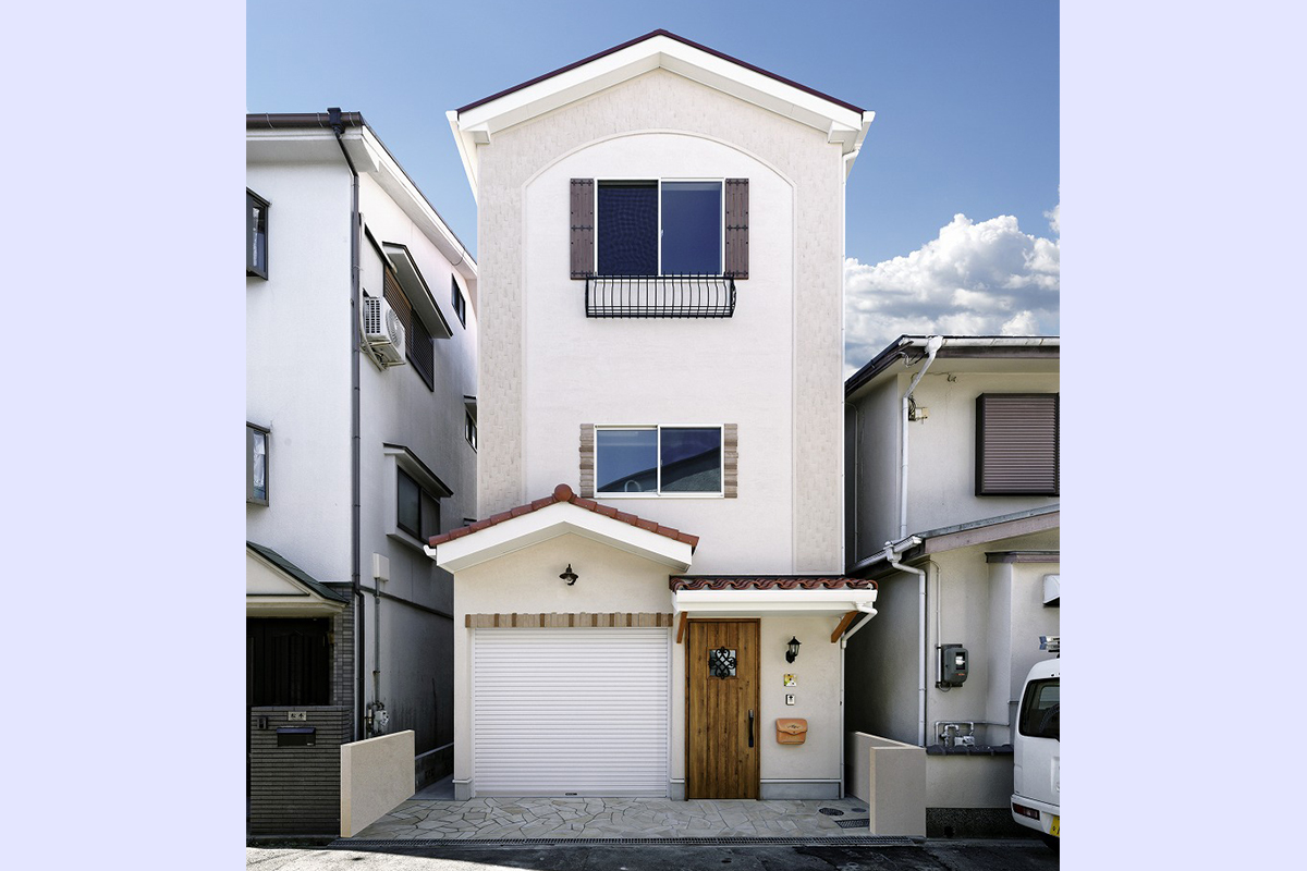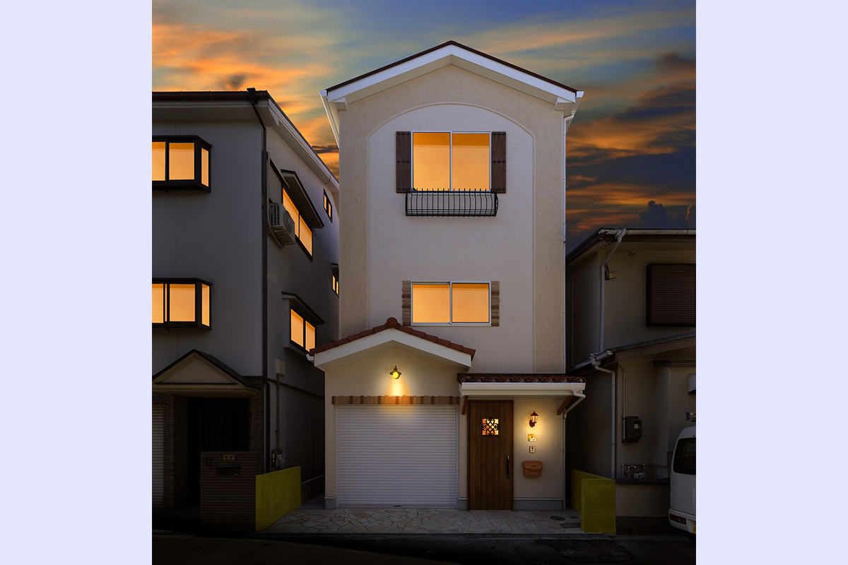 外観は柔らかなプロバンス風デザインをベースにしつつ、シャッター付きのガレージや機能性の高い玄関まわりを組み合わせ、趣味と暮らしが無理なく共存できるプランを実現。
