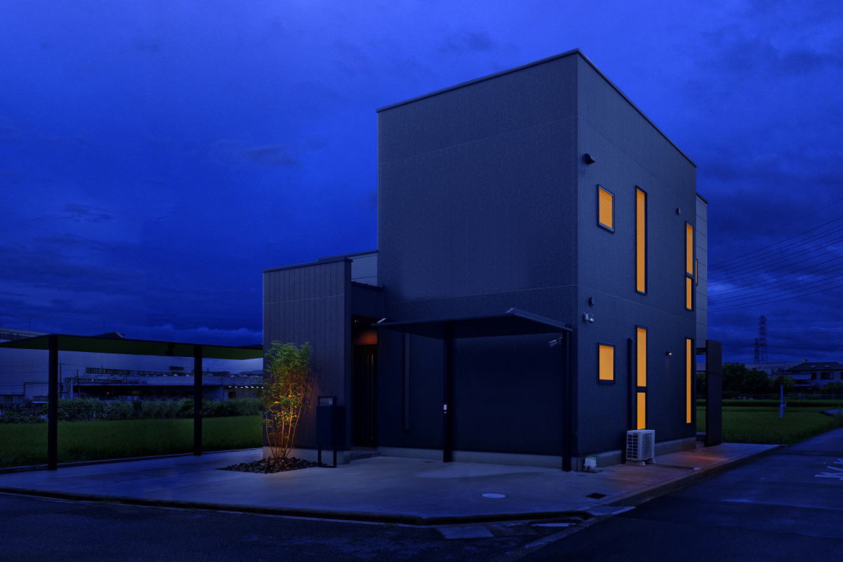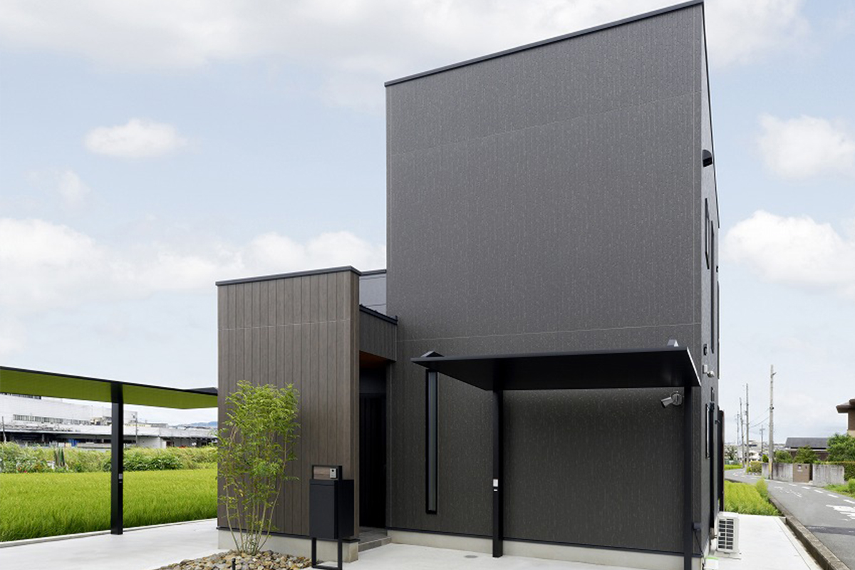 都会的な黒のガルバリウムに包まれたシャープな外観。
