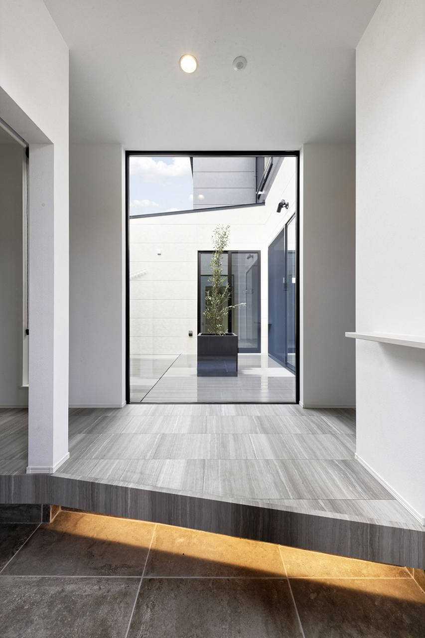 その内側に一歩踏み入れると、外からの視線を一切気にすることなく、家族だけの自由を享受できる「ロの字型の中庭」が広がります。