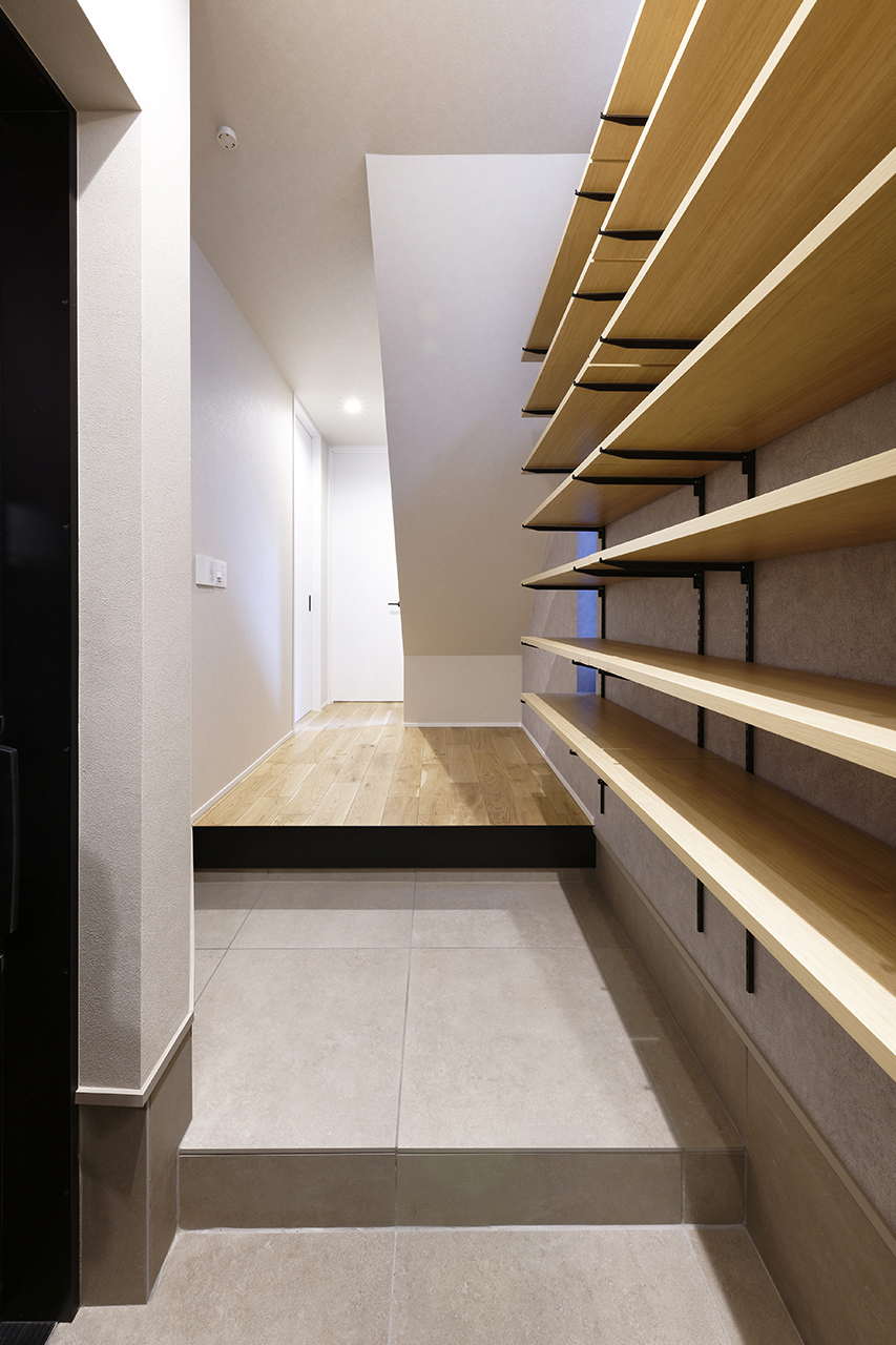 三階建てでも出入りしやすいよう配慮した玄関計画。